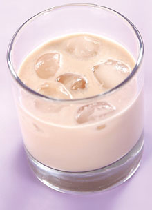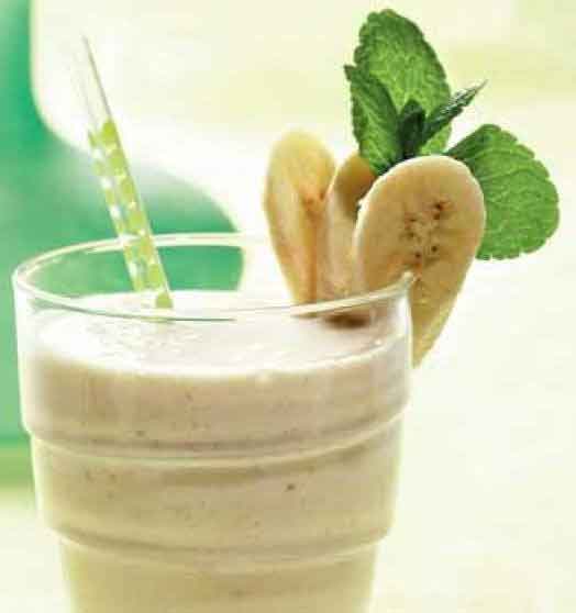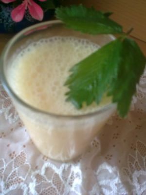 Все, кроме сливок, взбить в блендере украсить сливками и мятой.